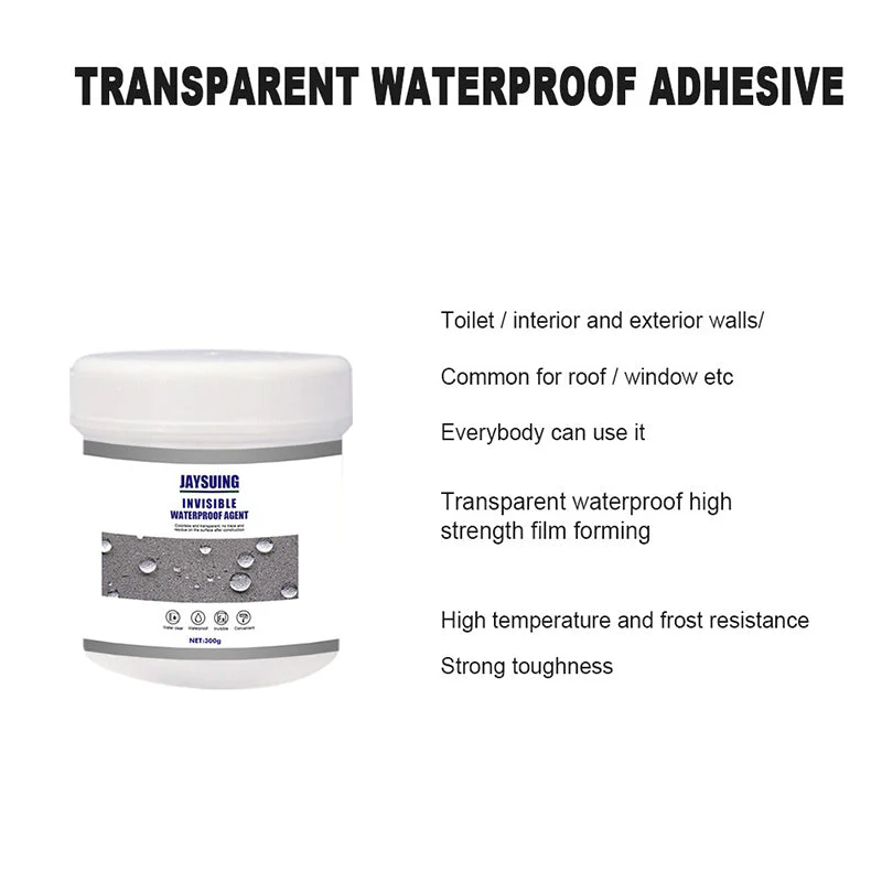 Transparent Waterproof Coating Agent is a revolutionary water-based rubberized paste, which completely seeps into cracks and seals any broken surface, forming a 100% waterproof barrier for lasting repair!